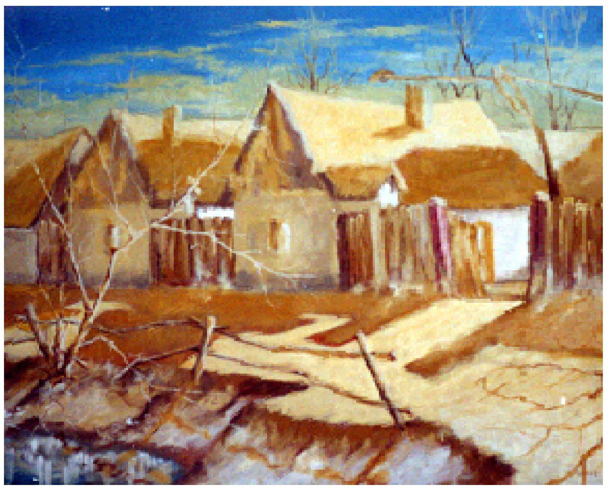 Morning in the village (oil/wallboard), private property 2005