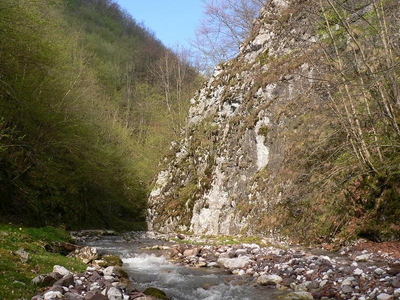 Szemközt a Csiga-hegygyel az Aranyos jobb oldalán magas mészkőfalak