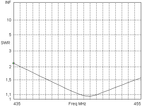 Az SWR minimum 446-447MHz-en van, a