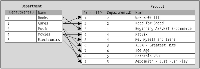 Figure 1-5 showed which products belong to which departments using arrows—it's time to see how you can tell the database to store this information.