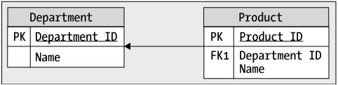 Unlike the constraints you learned about in the first part of the chapter, which apply to the table as an independent database object, the foreign key constraint applies restrictions on both referencing and referenced tables. When establishing a one-to-many relationship between the Department and the Product tables by using a foreign key constraint, the database will include this relationship as part of its integrity. It won't allow you to add a category to a nonexistent department, and it won't allow you to delete a department if there are categories that belong to it.