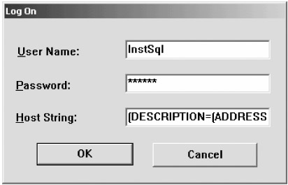 As well as the username and password for the user you want to log on as, you must supply the service name of the database to which you want to connect. If Oracle can't resolve the service name, you may need to supply a complete TNS descriptor for the database. For example: