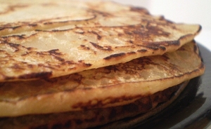 Az almát és a banánt leturmixoljuk egy kevés méz és 2 dl víz társaságában, majd annyi lisztet adunk hozzá, hogy sűrű palacsinta tésztát kapjunk. Kivajazott palacsintasütőben egymás után kisütjük a duci palacsintákat. Töltelék nem fontos bele, esetleg egy kis túró, vagy csoki öntet.