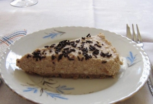 Ha letelt a 3 óra, kivesszük a hűtőből és levesszük a tortakarikát. Ha még nem jön le, akkor tegyük vissza a hűtőbe! Tálaláskor kakaóval, vagy tortadarával szórjuk meg.