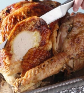 A sütőt előmelegítjük 180 °C-ra. A kakukkfüvet és a fokhagymát a pulyka hasüregébe töltjük, majd az üreget hústűvel összezárjuk, a lábakat pedig kötözőzsinórral összekötözzük. A vajat és a mustárt összekeverjük, és a pulyka óvatosan felvágott bőre alá kenjük. A pulykát egy mélyebb tepsibe tett grillrácsra helyezzük, majd vékonyan megkenjük az olajjal és megsózzuk. 5 dl alaplét a tepsibe öntve, alufólia alatt másfél óráig sütjük.