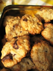 A hozzávalókat egy nagy tálban összeöntjük a csokoládét összetörve tesszük bele, illetve a kandírozott narancshéjból 2-3 maréknyit teszünk bele. Az összegyúrt tésztát hűtőben pihentetjük, kb. 1 óra hosszat. Ezután kis korongokat formáljunk belőle, vagy akár formával is kiszaggathatjuk és 210 fokon süssük ki. A sütés ideje kb. 10 perc. Az adventi kekszeket fém dobozban hosszabb ideig is eltárolhatjuk. tejjel, kakaóval, tejeskávéval is fogyasztható.