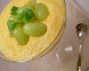 Az összedarabolt gyümölcsre öntsük rá a rumot és 20 percig hagyjuk állni. A 3 tojássárgáját keverjük kézi habverővel habosra a cukorral, adjunk hozzá 10 evőkanál bort. Forró vizes gőz felett addig főzzük a sodónkat amíg sűrűsödni, buzogni nem kezd, akkor jó, ha a kézi habverőnk csíkokat hagy a sodóba, tegyük félre és hagyjuk kihűlni, utána 80 percre tegyük hűtőbe. A kemény habbá vert tejszín egyharmadát tegyük félre a díszítéshez, a többit keverjük óvatosan a sodóhoz a magvakkal együtt. Locsoljuk meg a babapiskótát a megmaradt 4 evőkanál borral, 1-1-et tegyünk a 4 üvegkehely aljára, öntsük rá a sodót. A maradék tejszínt nyomjuk a sodó tetejére és hintsük meg az aszalt áztatott gyümölccsel. Azonnal tálaljuk. Mellé 1-1 pohár szoba-hőmérsékletű vermuttal, vagy tokajival együtt kínáljuk.