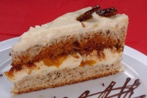 piskótalap, krém, darabolt ananász, grillázs, piskótalap. A torta külsejét krémmel bevonom és grillázzsal megszórom.