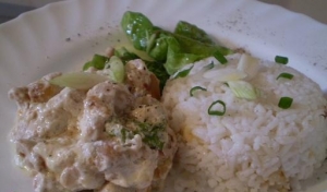 A kockára vágott vöröshagymát megpirítjuk, majd rádobjuk a szintén kockákra vágott csirkemellet, és hagyjuk, hogy megpuhuljon. Mikor már jól átpárolódott, daraboljuk hozzá a kockasajtokat, és öntsük fel egy kevés tejszínnel. Sóval, borssal ízesítsük. Tépkedjünk bele egy kevés mángoldot, és pár perc rotyogás után vegyük le a tűzről. Rizzsel vagy hasábburgonyával tálaljuk.