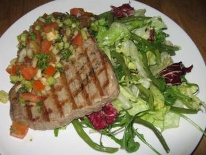 A szósz hozzávalóit turmixgéppel sima péppé dolgozzuk, majd felhasználásig hűtőszekrénybe tesszük. A halszeleteket megkenjük kis olívaolajjal és meglocsoljuk kis citromlével. A grillrácson mindkét felét kb. 5 percig - pirosra - sütjük. A zöld szószt a forró halszeletekre kenjük, és friss, teljes kiőrlésű magvas kenyérrel fogyasztjuk. Jól illik az ételhez a cseresznyeparadicsom, vagy a fejes saláta is.