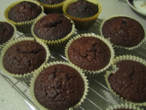 A margarint a cukorral és a tojásokkal keverd habosra. Reszeld bele a citromhéjat, majd folytonosan kavargatva add hozzá a lisztet és a tejfölt. Végül tedd bele a csoki reszeléket és a meggyet. Öntsd muffin-sütő formába és süsd 20 percet a sütőben. Miután meghűlt porcukorral meghintve fogyasztható.