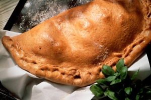 A tésztát körülbelül egy ujjnyi vastagra nyújtsd ki. A felébe halmozd bele a sonkás masszát, a tészta másik felét pedig hajtsd rá, és a széleket jól nyomd össze. A tetejét kend meg a tojássárgájával. Kiolajozott tepsiben süsd körülbelül 30 percig.