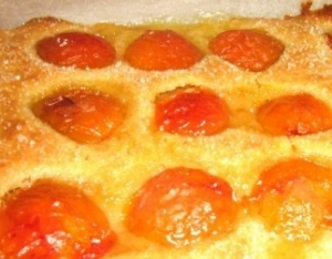 Az alapanyagokat összekeverjük, sütőpapírral bélelt jénai tálba öntjük. A felezett barackokat belenyomkodjuk a keverékbe, és közepes hőmérsékleten megsütjük. Ezután kristálycukorral megszórjuk és grillen rákaramellizáljuk a cukrot. Melegen fogyasztjuk.