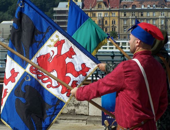 Hunyadi János (emlékező) hada üdvözli Kapisztrán János (emlékező) kereszteseit - 1
