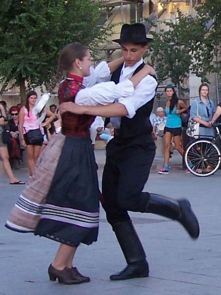 A Kincső Együttes táncosai a Március 15. téren / 1