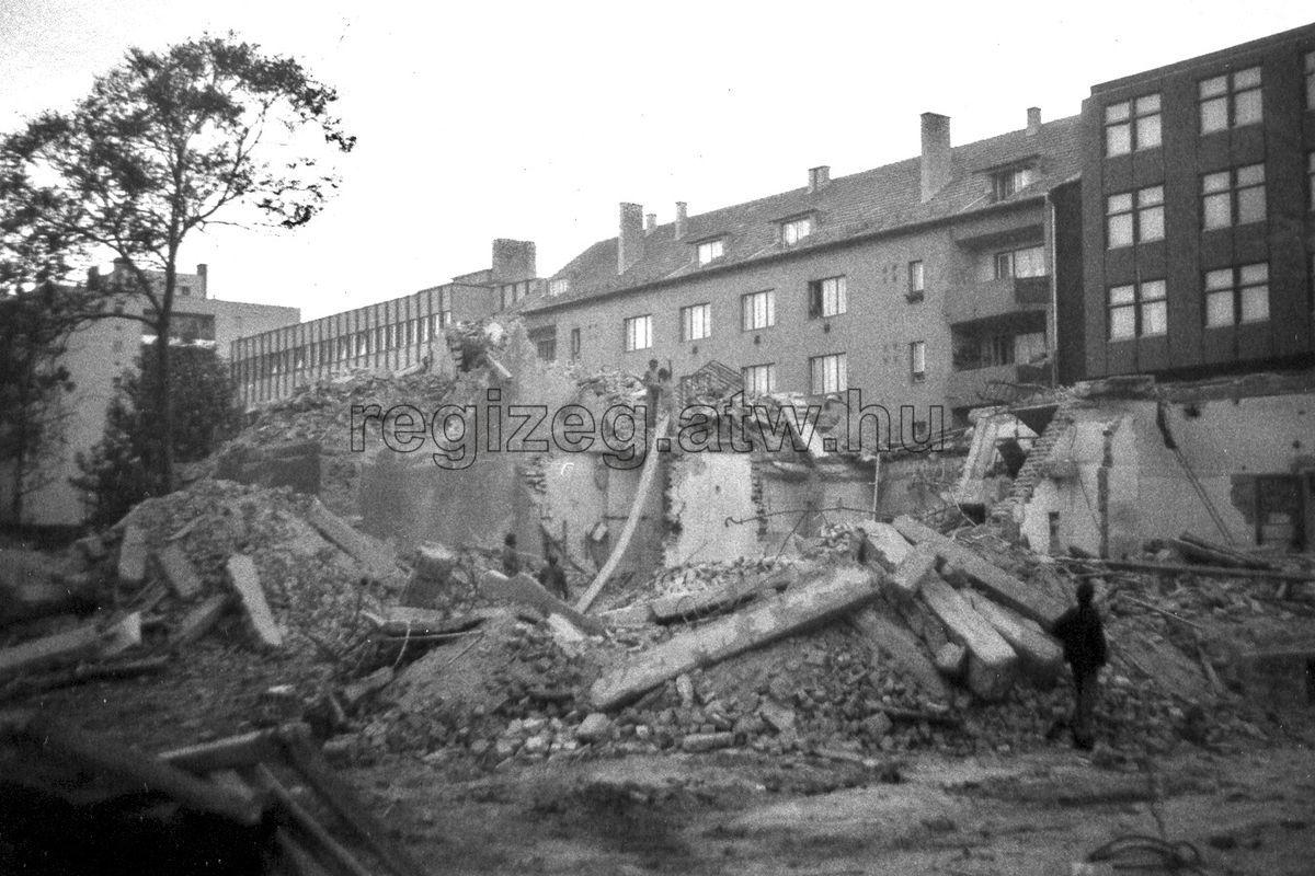 Bontás a Kossuth utcában, az Európa tér felől fotózva - 80-as évek