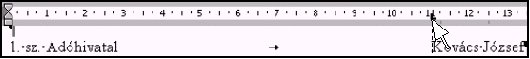 Kattintsunk az egérrel a vonalzó 11 cm-es beosztásán! Ezzel egy balra igazított tabulátorütközőt helyezünk el a bekezdésben. Írjuk be a nevet és üssünk Entert!