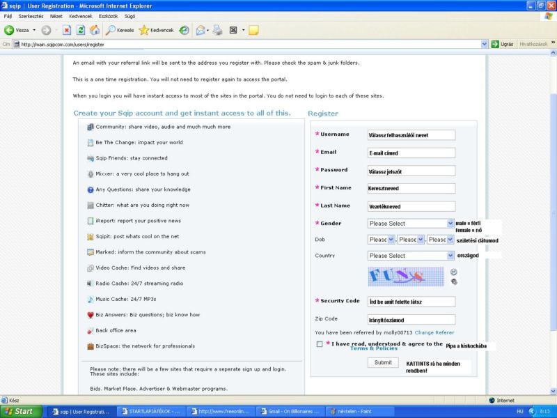 ide kapod majd az értesítést az ajánló oldalad linkjével, amire majd