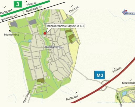 1. Miskolctól 40 km-re Budapest felé az M3-as autópálya (a 139-es kilóméternél közvetlen le és felhajtó) és a 3-as út között 2. Mezőkereszteres település a 3-as út és az M3-as autópálya között 3. A szállás elhelyezkedése Mezőkeresztesen a 3-as út és az M3-as autópálya felől megközelítve 4. Ságvári út 6. - főbejárat a parkoló felé a József Attila út felől |