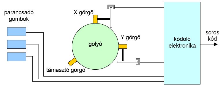 Működése megegyezik az egérével. A pozícionáló golyó lehet a házhoz