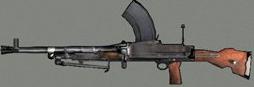Egy bikaeros csapattámogató gépkarabély, de közelharcban nem igazán jó. Nagyon pontos, és a Garandnál is gyorsabb. Ha egy géppisztolyos megtámad, akkor természetesen van esélyünk, csak nagyon kicsi. Egy Thompsonhoz képest kicsi a tuzgyorsaság, de cserébe elég nagyot sebez. A legnagyobb hátránya, hogy nagyon nagy a súlya, ergo lassan lehet ezzel a fegyverrel is közlekedni, és sokáig tart a nagyon kicsi (20 golyós) tár ürítése. Népszeru fegyver, mert pontos, és jól zoomol, amikor szemhez emeljük a szálkeresztet. Végül is ez egy géppuska, és ahhoz képest pedig jó. Tárat lehet cserélni bármikor, de elég sok idot igényel. Egy akció közbeni tárcsere 95%-ig halálos kimenettel jár. Ha puskának vesszük, akkor nagyon jó, ha géppisztolynak vesszük, akkor nagyon rossz.