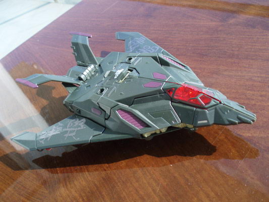 Ismét egy remek figurát szeretnék bemutatni, melybõl kishazánkban talán ez az elsõ példány. A ROTF toyline-ban kiadott voyager class Mindwipe figura alt módja egy F-117 Nighthawk lopakodó repülõ, melyet ebben az esetben is sikerült közel tökéletesen lemásolni. A néhány módosítás és extra törésvonal pedig talán még szebbé is teszi a gép kinézetét. A szárnyain szolid "földönkívüli tetkók" találhatók, ám ebben az esetben ezek nem rontják el az összképet, illeszkednek a valahol a sötétzöld és a fekete között elhelyezkedõ alapszínhez, és a sötétlila alkatrészekhez. Külön kiemelendõ a pilótafülke, mely az egymás alatt több rétegben elhelyezkedõ vörösen áttetszõ panelek miatt a napfény hatására elképesztõ színben játszik. Egyébként ezekbõl a panelekbõl áll robot módban a figura két pengéje. A hovatartozást a gép tetején található Decepticon insignia mutatja, mely robot módban a figura mellkasára kerül. Egyébként nagyon stabil az alt mód, az anyaga sem túl vékony és kellemes tapintású.