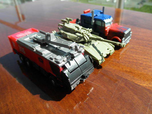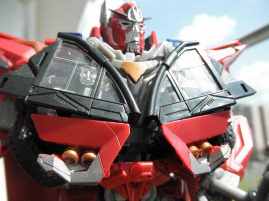 A leader figura természetesen rendkívül kidolgozott, és részletgazdag. Tûzoltó módban gombnyomásra használja a megkülönböztetõ jelzéseket (villogó, sziréna). Tekintélyes méretû, bár ahogy a többi harmadik filmes figurának, szerintem neki is valamivel nagyobbnak kéne lennie, ami látszik is, ha leader Optimus Prime kamion módja mellé tesszük. A pajzsot az autó, a kardot pedig a tetõ alá tehetjük. A tûzoltó fecskendõt tartó konzol mozgatható.