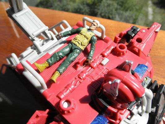 A maga nemében a commander verzió is remek figura, ötletes átalakulással. A kard a tûzoltóautó mód aljára kerül, a pajzs pedig az alt-mód része, így nem kell attól félni, hogy elkallódnak.