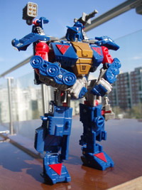 A robot mód új fejet kapott, mely jellegre hasonlít a Pretender verzió kecske-koponya ábrázatára, természetesen úgy, hogy az újragondolt verzióhoz is passzoljon. Ennek ellenére szerintem kevésbé illik hozzá, talán mert a figura testén inkább a voros dominál, a fej pedig csontszínû és nem szürke, mint a figura másik jellemzõ színe. Mégis nekem jobban tetszik ez a színséma, mint amit Darkmount-nál láthatunk. Nagyszerû figura.