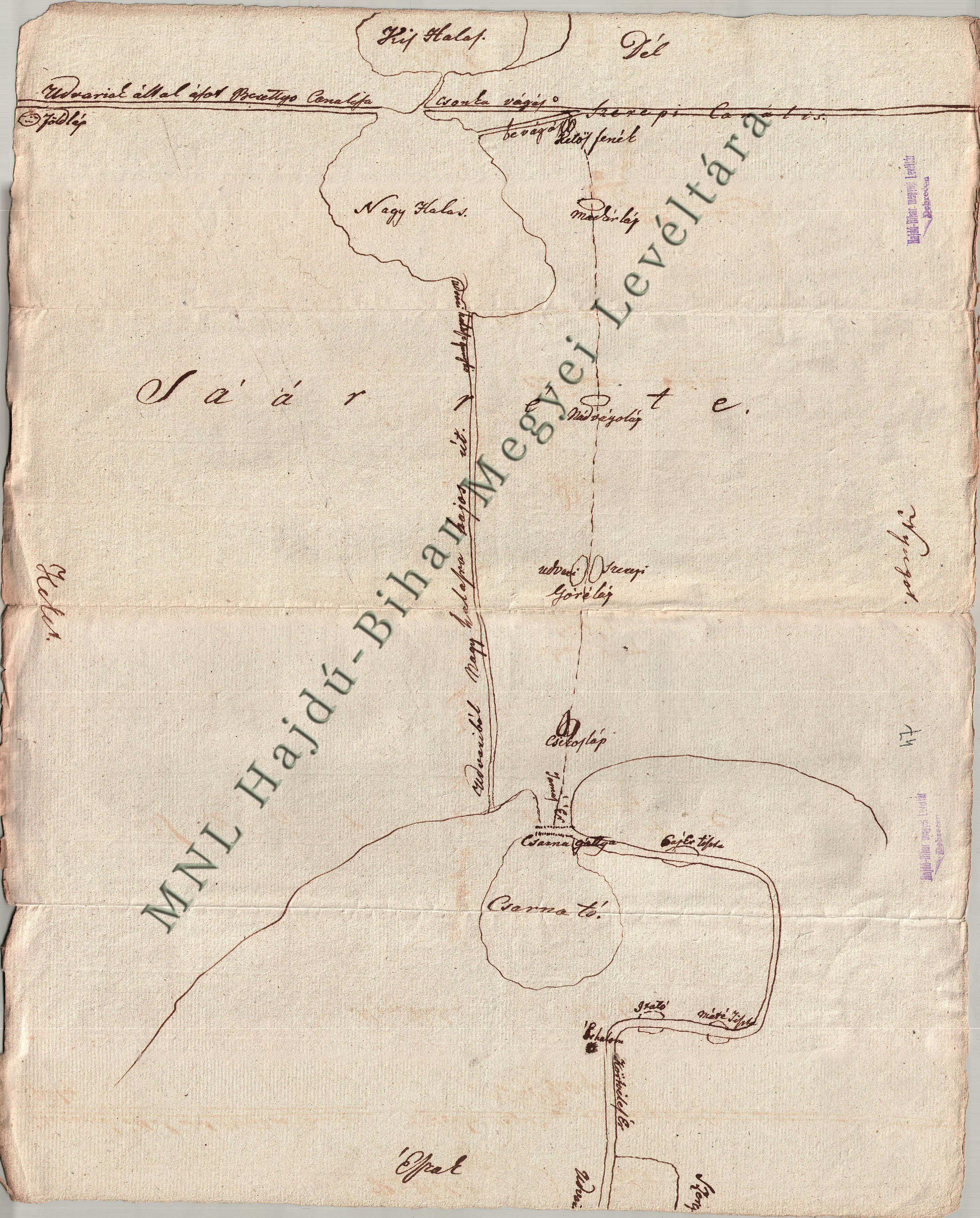 A Sárrét lecsapolási térképvázlata 1837