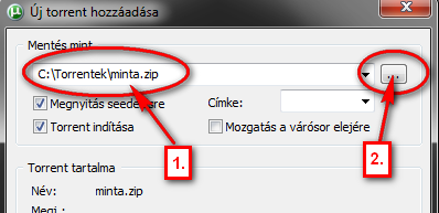 2.) Ezzel a gombbal keresd meg a fájlt, ami a C:\Torrentek\minta.zip helyen található.