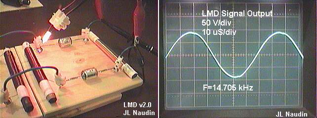 Az LMD (Longitudinális Magneto-Dielektromos) vonal analóg szimulációja a longitudinális EM hullámok két párhuzamos vezetékből történő térbeli tovaterjedésének. Ez hagyományostól eltérő áramlása az EM sugárzásnak.