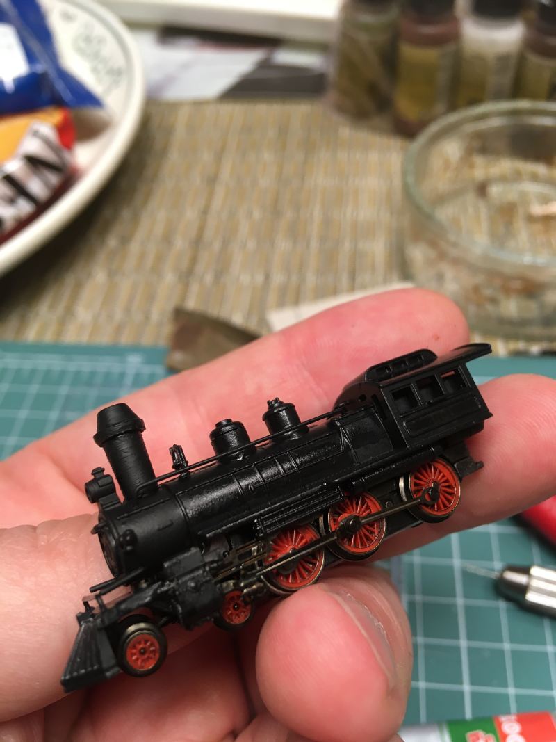 A vonatot is át kellett alakítani, mivel elég furcsa színben készült, ráadásul az első kémény sem hasonlított.