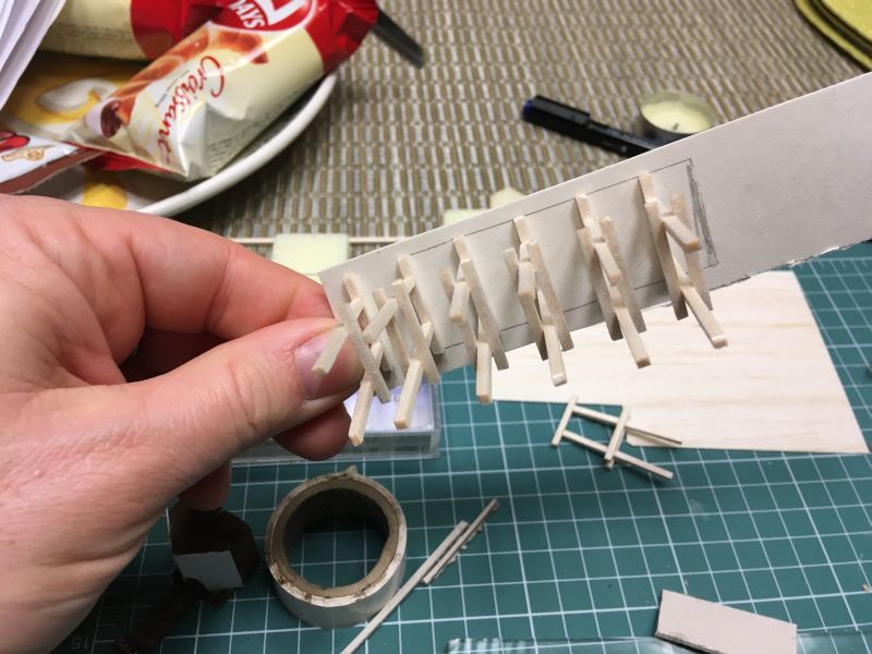 A létrák készítése elég aprólékos volt. Először fokokat kellet vágni. Utána egyenként felragasztani, egy méretre vágni,