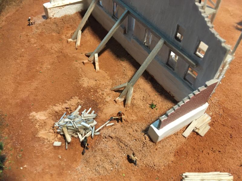 Először az épületekkel kezdtem. Mindegyik méretének a meghatározásához egy gyári méretű kis figurát használtam.