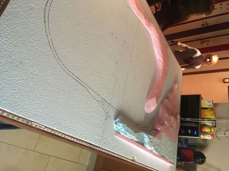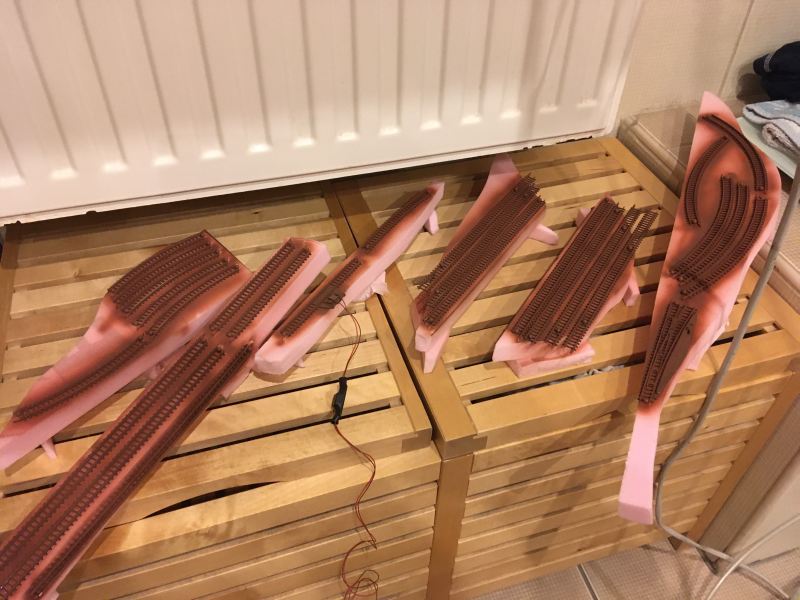 megvoltak, megterveztem, hogy mi, hol fog elhelyezkedni. A sínpálya helyére parafa lapokból vágtam alapot.