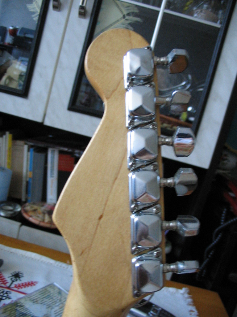 Szerettem volna újra birtokolni egy elektromos gitárt, no és persze újra gyakorolni rajta, ezért vettem egyet. Mivel anyagi lehetőségeim meglehetősen végesek voltak akkor is, nem válogathattam sokat. Olcsón találtam ezt a fadarabot, hát megvettem, hazavittem, és (ahogy kell) szétszedtem. Kiderült egy s más, amit nem sejtettem. |