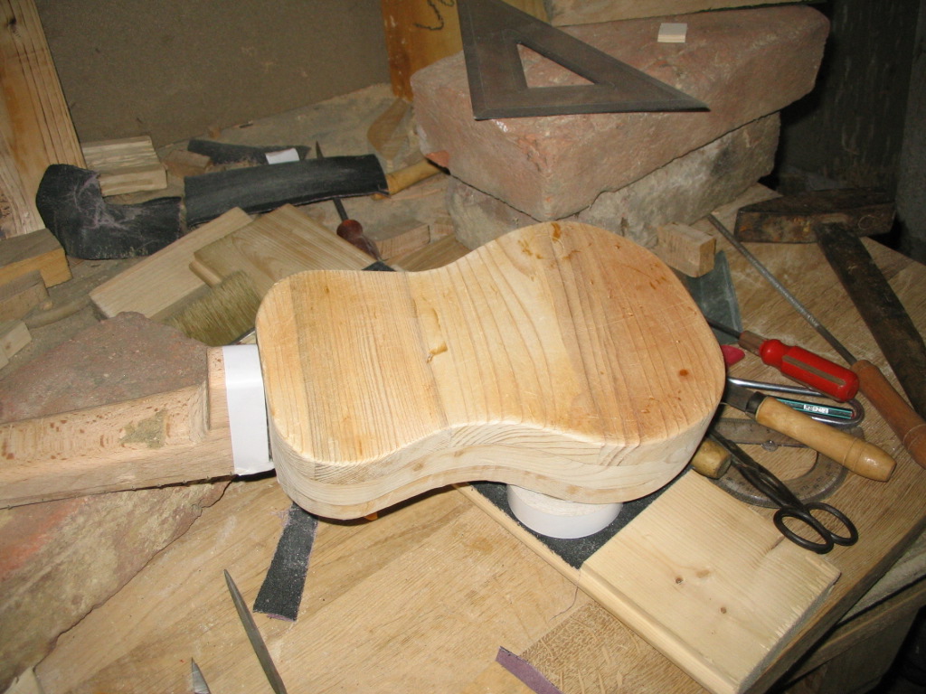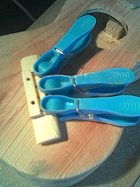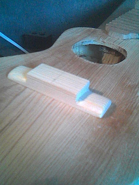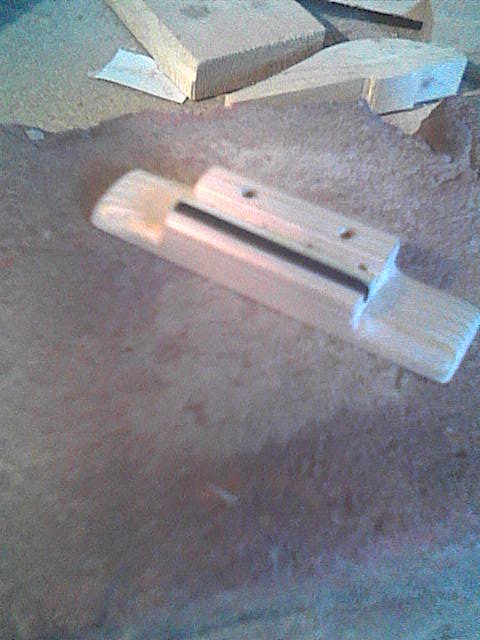 És már csak egy fontos alkatrész maradt: a húrláb. Találtam hozzá egy jópofa kis fenyődarabot. A támasztó része sok fejtörést okozott, de végül találtam egy darab műanyagot (dobozfül belső pántja), ami tökéletesnek bizonyult e célra. Itt finom mérésekre és nagyon óvatos fúrásokra volt szükség. Legközelebb szélesebbre csinálnám, mert a húrvezető furatok túl közel esnek az anyag széléhez, és ez bizony gyengítheti a húrlábat. A stabilizáló csavarok helyét is nagyon meg kellett gondolni, ne hogy találkozzanak a húrvezető furatokkal. Szerszámok: fűrész, szike, fúró, ráspoly, csiszolóvászon és szivacs. Bocsika a képek minőségéért, de csak a telefon volt kéznél. |