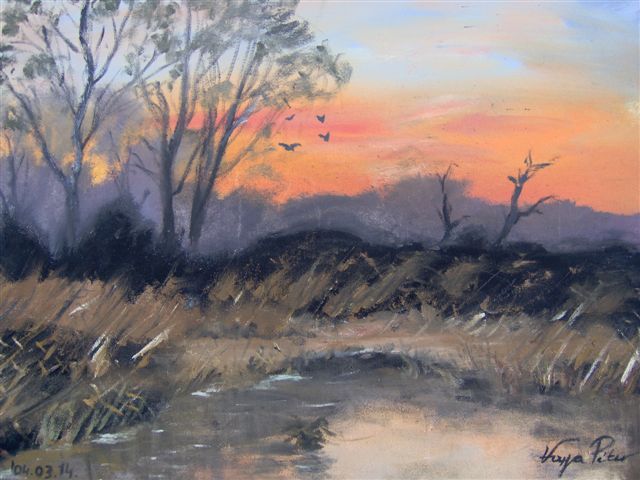 Alkonyi színek (olaj, fa; 40 x 50 cm, 2007) |