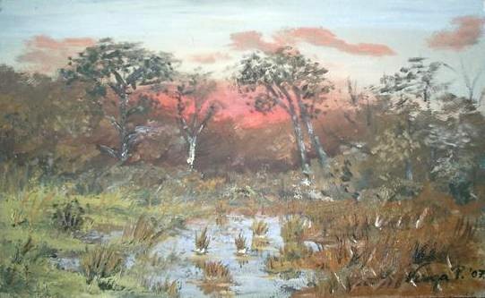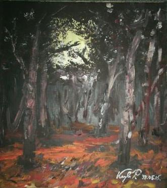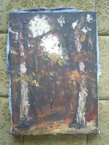 Erdő széli alkony (olaj, fa; 40 x 50 cm; 2005) |