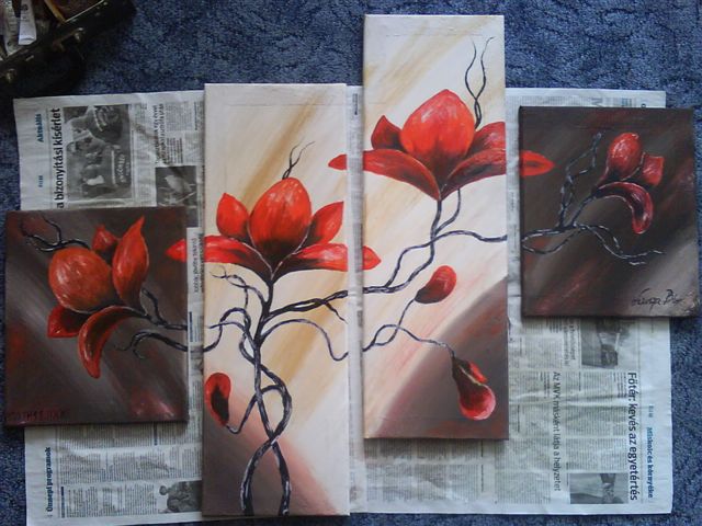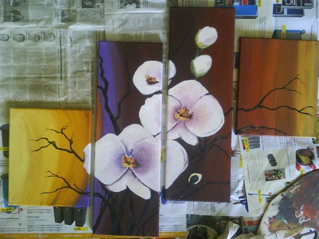 Orchideák (olaj, vászon; 25x30/20x60/20x60/25x30 cm; 2012) |