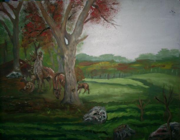 Tanulmány a Szarvasbőgéshez (olaj, fa; 24 x 25,3 cm, 2001) |