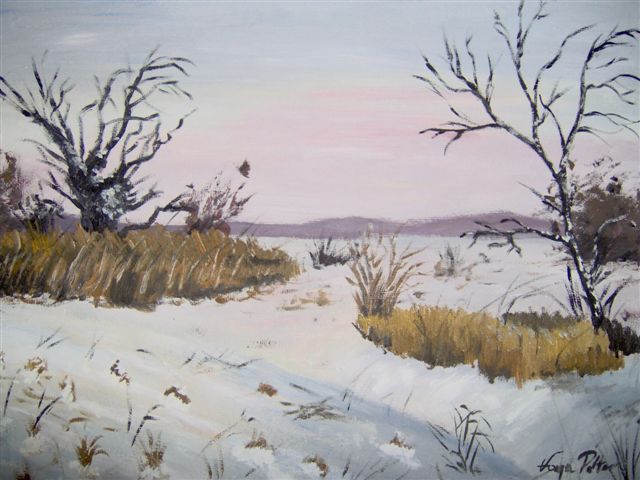 Téli alkony (olaj, fa; 40 x 50 cm, 2006) |