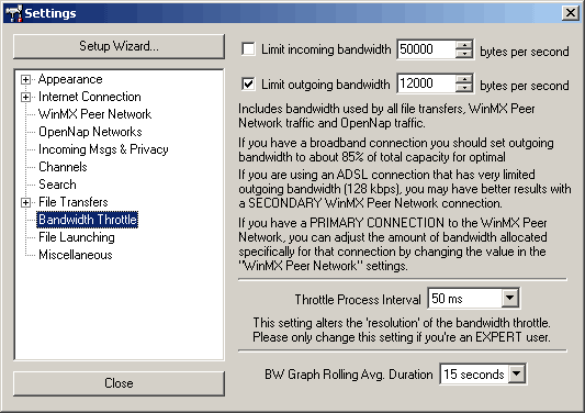 A további beállítások csak elsődleges kapcsolat esetén működnek. A kommunikációs sávszélességet tudod megadni az Allocated Bandwidth lenyíló menünél. Az alsó két lenyíló menü a keresések prioritását és a sávszélességből elfoglalt százalékos mennyiségét adják meg. A jelölőnégyzet lehetőséget biztosít arra, hogy az elsődles kapcsolatot 266 Mhz alatti számítógépen használd, azonban ez olyan mértékű processzoridőt eszik, hogy használata nem ajánlott.