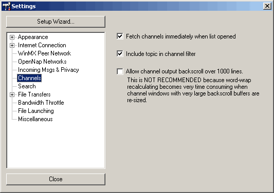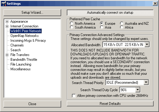 benyomása esetén a WinMX minden induláskor automatikusan csatlakozik a hálózathoz. Ellenkező