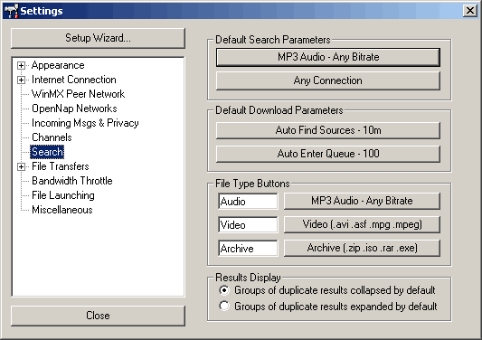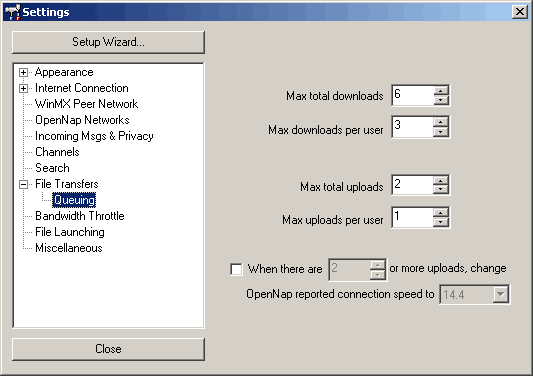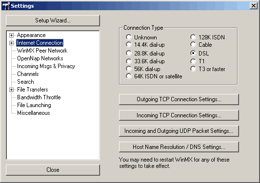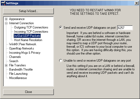 beállításait. A WinMX nagy előnye, hogy a legtöbb hálózati felépítést támogatja.