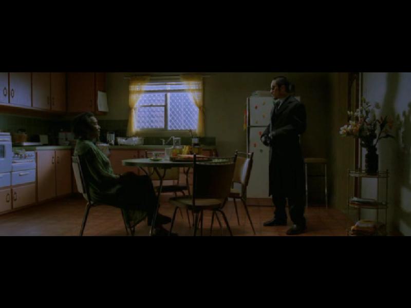 a film elso részének legelején, amikor Trinity-ért mennek a rendorök,