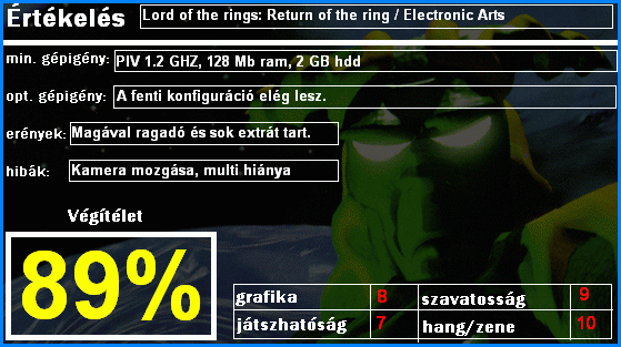 ami a zenei aláfestéssel keveredve utánozhatatlan Gyűrűk Ura hangulatot